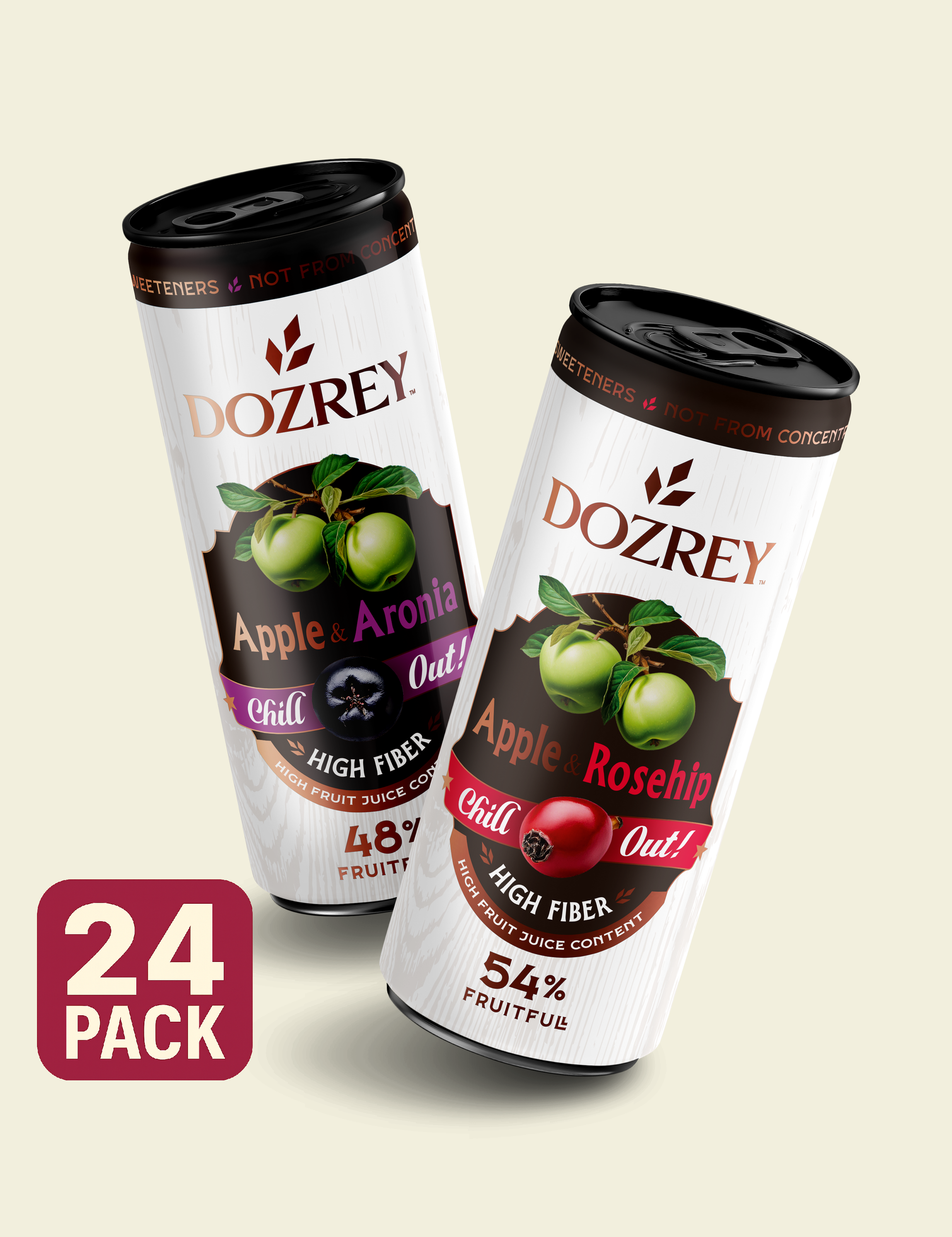Objevte dokonalou rovnováhu mezi výrazným a zářivým s balením DOZREY Duo Pack, které obsahuje dvě přirozeně funkční příchutě: Jablko a aronie a Jablko a šípky . Každá z plechovek je vyrobena ze šťáv lisovaných za studena, nikoli z koncentrátu (NFC), a přináší osvěžující chuť a skutečné výhody – bez přidaného cukru, konzervantů a umělých sladidel.